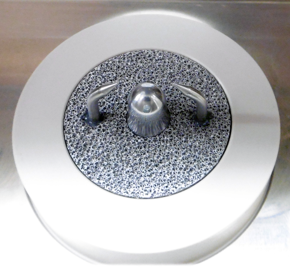 Os dois dedos pontiagudos de cada lado fazem parte da experiência como objetos de referência para a calibração. São feitos de uma liga de níquel-ferro termicamente estável. Durante cada corrida, o líquido condensado é continuamente aspirado por um material esponjoso na base da alheta, bombeado e reevaporado num circuito fechado.