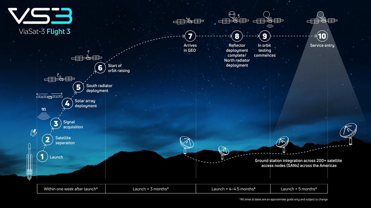 Cada satélite ViaSat-3 ofereça mais de 1 Terabit por segundo (Tbps) — ou 1.000 Gbps — de capacidade total de rede para fornecer uma rede global de banda larga com largura de banda suficiente para oferecer serviços de internet e streaming de vídeo acessíveis, de alta velocidade e alta qualidade.