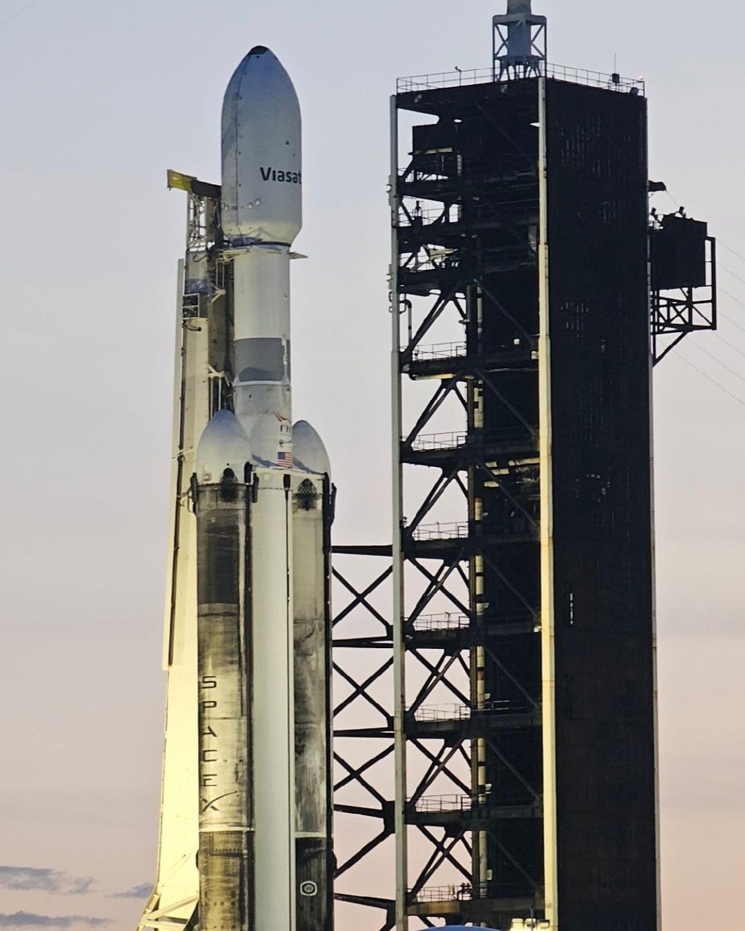Após um adiamento de 48 horas devido ao mau tempo e no seu primeiro lançamento desde Outubro de 2024, um foguetão Falcon Heavy colocou em órbita o satélite de comunicações ViaSat-3.3 a partir do Centro Espacial Kennedy, Ilha de Merritt, Florida.