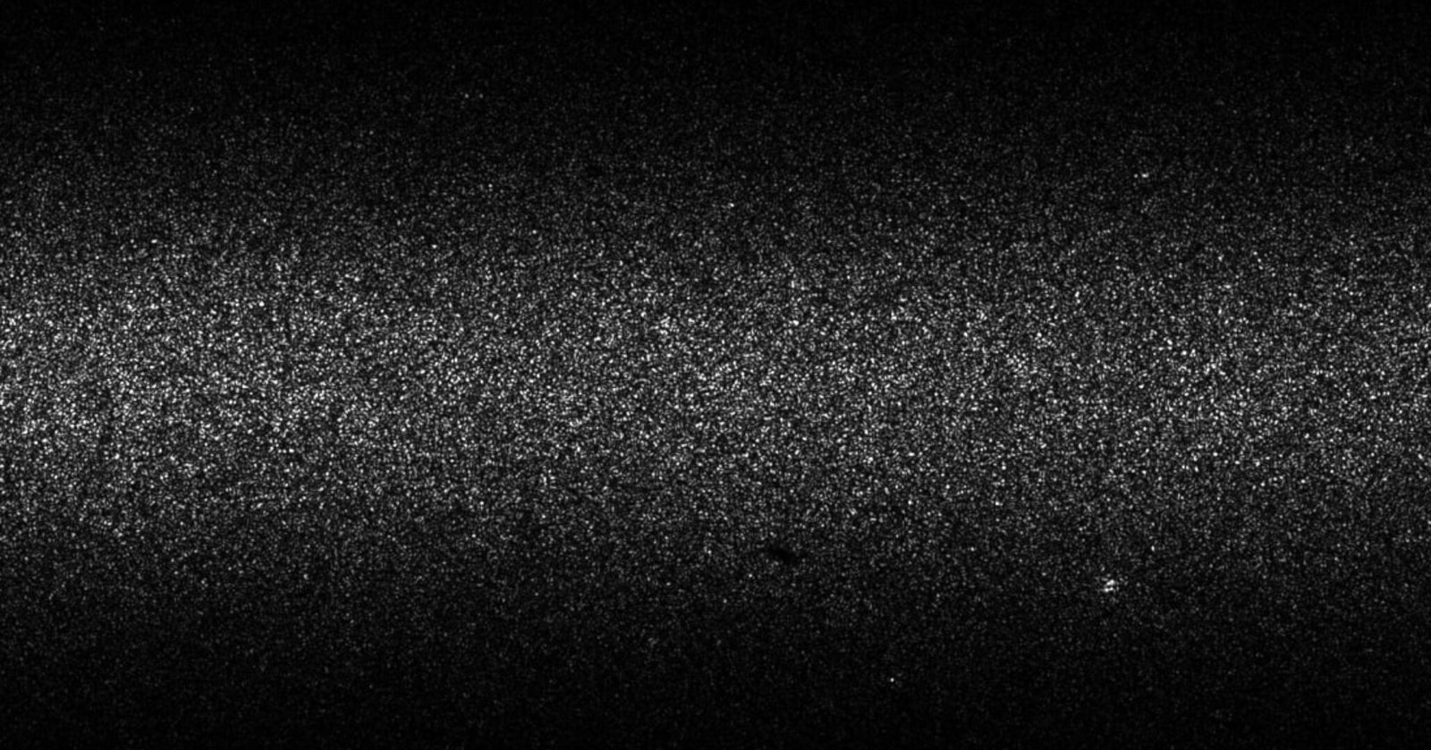 Semelhante ao ruído estático de uma TV antiga, a luz espalha-se através de um gel no espaço. Mas, ao contrário do padrão aleatório nos ecrãs analógicos a altas horas da noite, cada mancha branca e preta nesta imagem tem significado na física fundamental. O fundo desfocado está a ajudar os cientistas a compreender o comportamento das partículas microscópicas quando estão livres de gravidade.