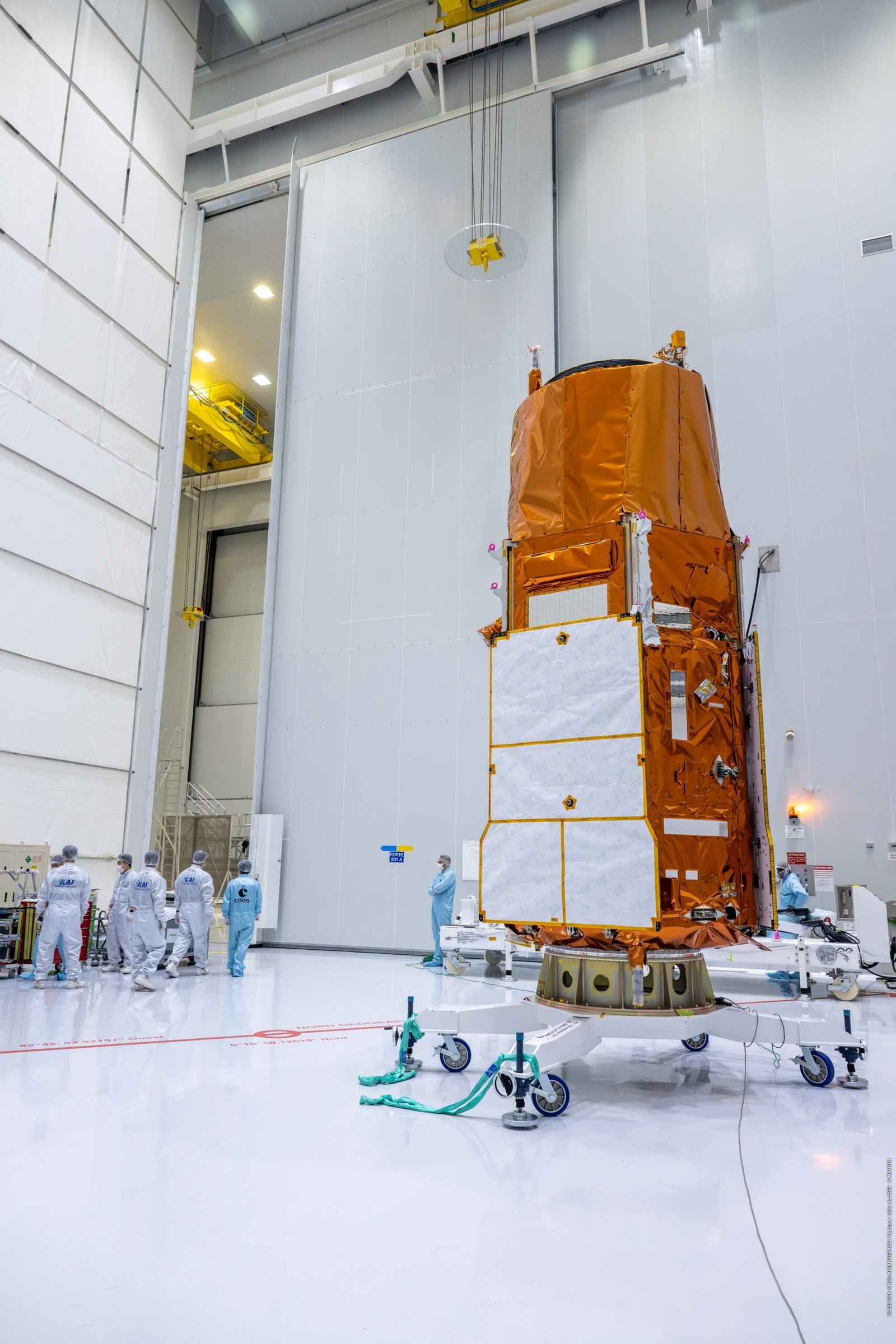 A 15 de Novembro o satélite era acoplado ao adaptador de carga e a 17 de Novembro era colocado no interior da carenagem de protecção (estas são as operações de encapsulamento, isto é, de colocação do sistema compósito superior – carga e estágio AVUM – no interior da carenagem de protecção).