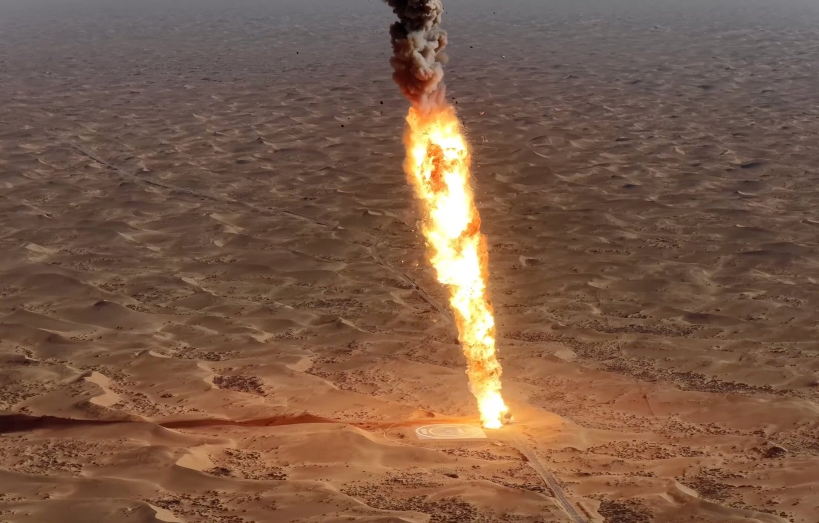 Durante o lançamento, as chamas e a exaustão de alta temperatura dos motores do foguetão são direccionadas para a vala de chamas de betão armado através de um grande buraco redondo sob a plataforma de lançamento móvel. As chamas e gases são então desviados do veículo de lançamento através de dois canais de chama rectangulares localizados em ambos os lados da plataforma de lançamento.