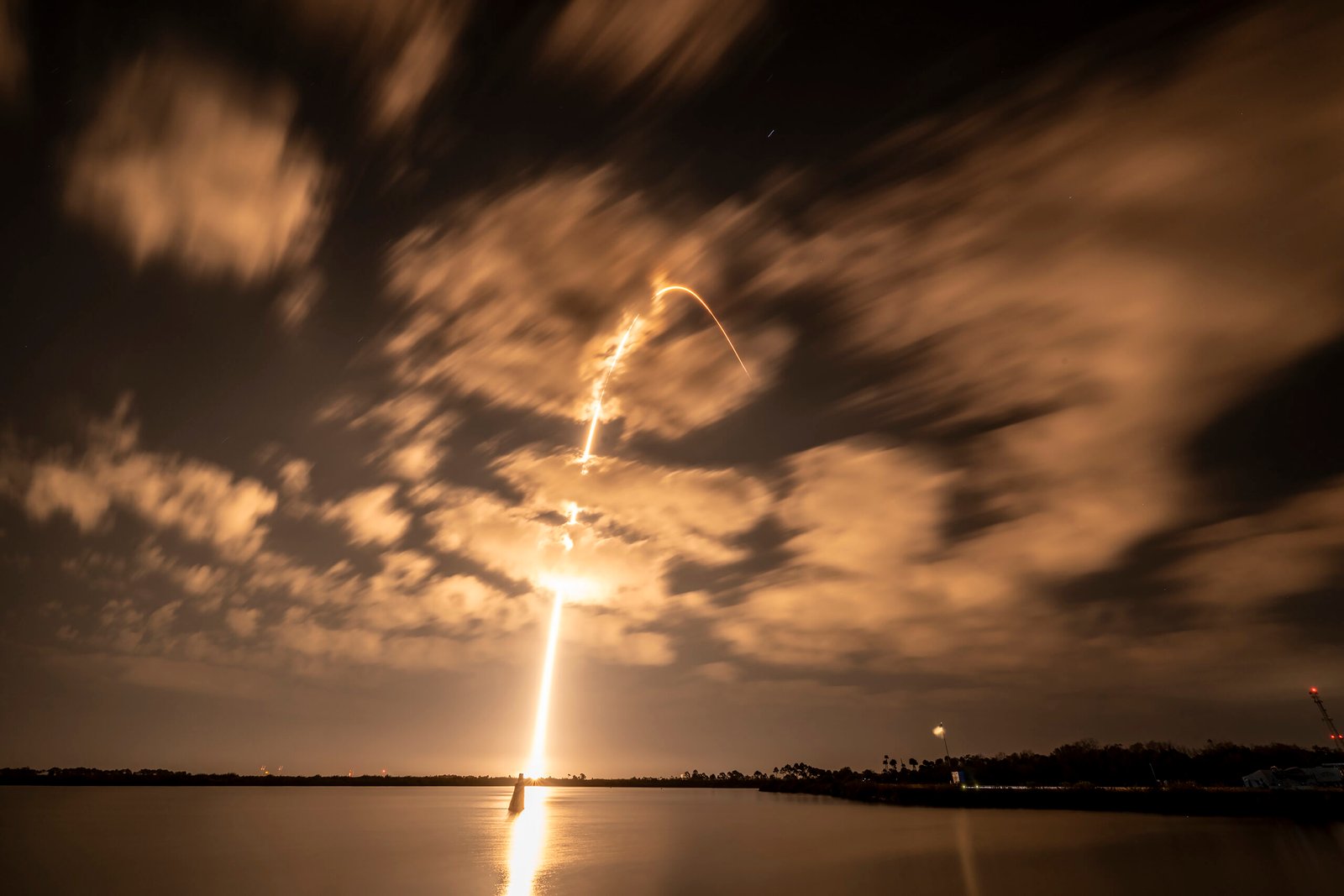 Abandonando a plataforma de lançamento, o Falcon-9 inicia uma série de manobras para se colocar na trajectória de voo correcta.