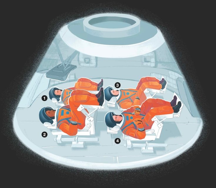 O Módulo da Tripulação é a parte pressurizada da cápsula espacial Orion, onde a tripulação viverá e trabalhará na sua viagem até à Lua e de volta. O módulo de tripulação pode acomodar quatro tripulantes até 21 dias e oferece um habitat seguro durante o lançamento, as operações em órbita, a aterragem e a recuperação.