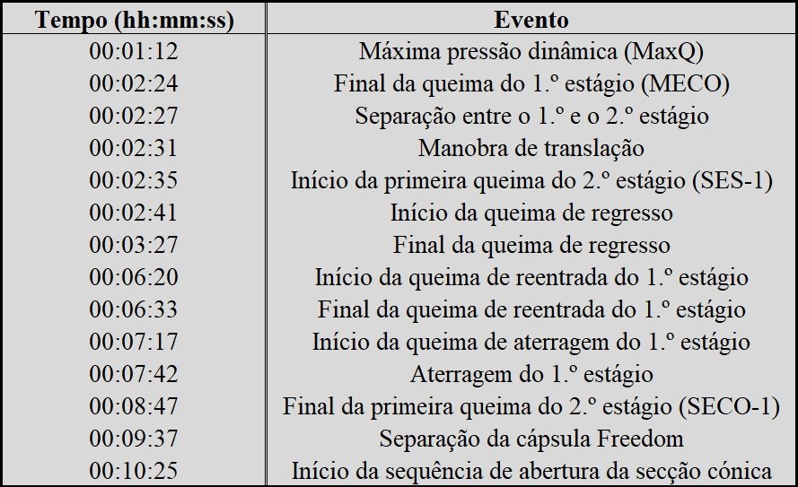 | 2026-031 | 600 | B1101.2 | CCSFS, SLC-40 | 13/Fev/26 10:15:55 | Freedom Crew-12 | LZ-40 |