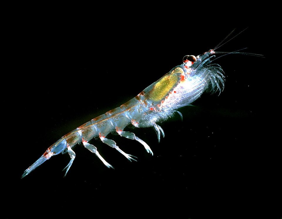 O krill antártico é um crustáceo semelhante a um camarão, encontrado no Oceano Antártico, com uma população de cerca de 800 triliões de indivíduos (excluindo ovos e larvas). Presente em toda a região e a todas as profundidades, é uma importante fonte de alimento para um vasto leque de espécies, desde estrelas-do-mar quebradiças a grandes baleias. Ao alimentarem-se de fitoplâncton, moldam as teias alimentares e impulsionam os ciclos do carbono, azoto e outros elementos essenciais. Em suma, o krill é uma espécie fundamental, alimentando pinguins, baleias, focas e peixes.