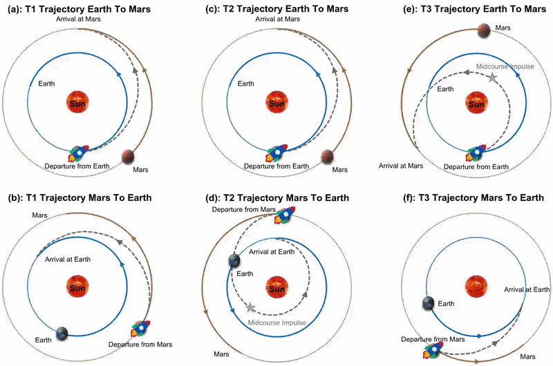 A equipa analisou órbitas de transferência para Marte nos últimos 60 anos e usou uma esfera de água em camadas para simular a quantidade de radiação que os órgãos internos de um corpo humano absorveriam. Órbitas de transferência mais rápidas poderiam reduzir a exposição à radiação em 55%, viajando durante o máximo solar em vez do mínimo solar, enquanto missões com trajetórias que poupam combustível poderiam apresentar reduções de até 45%.
