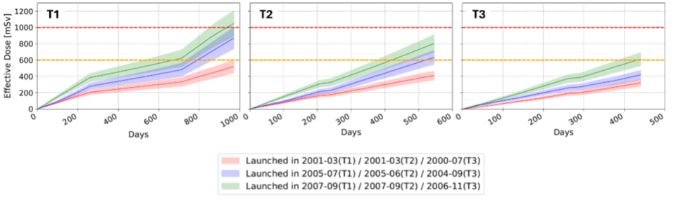 Estudos anteriores já indicavam que uma missão a Marte durante o mínimo solar levaria os níveis de dose de raios cósmicos galácticos para níveis perigosamente próximos dos limites de exposição da ESA.