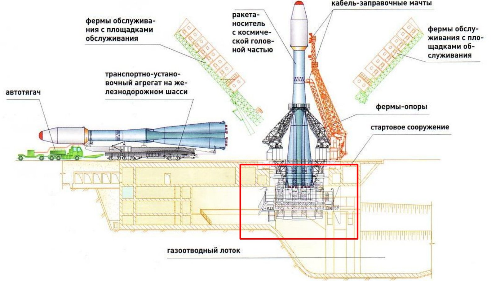 Denominada “8U216”, esta estrutura é acomoda nas suas plataformas as linhas hidráulicas e de gás de outros sistemas do complexo, direcionando-as para os pontos de acoplamento do lançador e permitindo a instalação de elementos específicos dos sistemas de orientação do foguetão. Esta secção está configurada como uma plataforma retangular suspensa sobre quatro carrinhos ligados a carris de monocarril e movidos por uma transmissão por corrente.