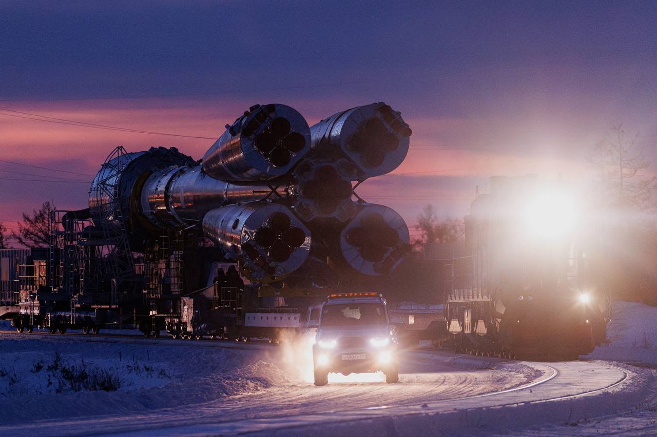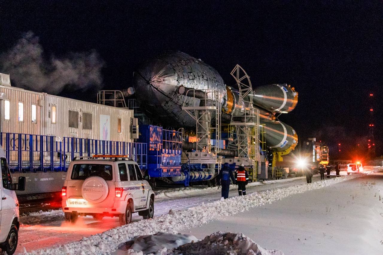 O foguetão 14A14-1B Soyuz-2.1b/Fregat (К15000-016/142-602) foi transportado para a Plataforma de Lançamento LC-1S no dia 26 de Dezembro, iniciando dois dias de preparativos para a missão.