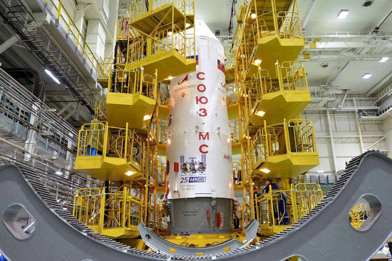 No edifício de montagem final do foguetão lançador que serve a Área 31, procedeu-se à montagem do foguetão 14A14-1A Soyuz-2.1a após a chegada do Módulo Orbital contendo a cápsula Soyuz MS-28. O procedimento de montagem final (23 de Novembro) inicia-se com a colocação do sistema de emergência no «topo» do Módulo Orbital. Este sistema pode ser utilizado nos primeiros minutos do lançamento para resgatar a tripulação caso surja algum problema com o foguetão lançador. O Módulo Orbital é então acoplado com o último estágio (Blok-I) e este conjunto é depois acoplado com os estágios inferiores, sendo o estágio central o Blok-A.